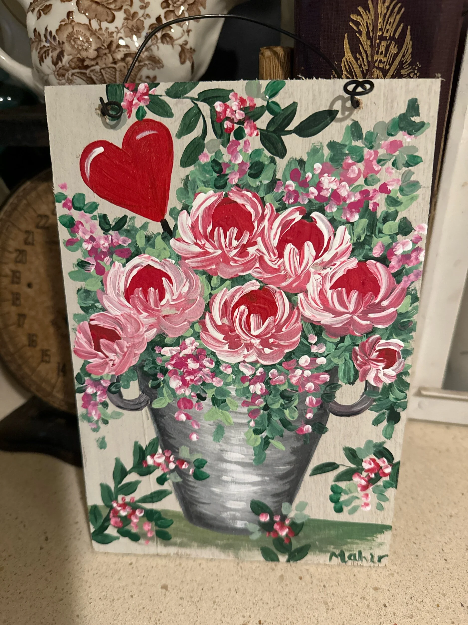 Shop Categories: All Decor Painted Signs Shop All | Decor | Painted Signs | Christmas cheer sign $5.00 Deer with a bow $10.00 Snowman with tree sign $8.00 Snowy Santa sign $9.00 Joy sign $4.00 Mary grinch as sign $8.50 Multicolor tree sign $8.00 Snowy tree on black $4.00 Merry Christmas mug sign $8.50 Santa and green hat $9.75 Snowman on black $3.50 Mary greeting sign $7.50 ‘tis the season sign $5.50 Snowy Christmas tree on $4.00 Primitive style peppermint sticks $28.00 Sold out Hummingbird on light green sign $8.50 Shiny Brite sign on black $13.00 Santa boot with Holly sign $10.50 Santa with a knot whole nose $8.00 Santa boot sign $9.50 Snowman on light green background $9.75 Squirrel and fall leaves $8.00 Christmas tree on red background $7.00 Nativity scene on canvas, framed in wood $9.00 Shiny BRITE sign $7.00 Pink Christmas tree $6.75 Jingle all the way $6.50 Be mine 5j2mini $4.75 Valentine 5j2 mini $4.75 4”x6” original landscape $18.00 2j5love $11.50 5j2heart $3.00 5j2wel $8.00 5j2stpat $8.50 5j2val floral heart $10.00 5j2bemine $8.75 2j5bird with backpack $11.75 Original Bunny Art $5.50 Sold out Original Bunny Art $6.50 Welcome Rabbit $10.00 Sold out Bird pulling wagon of hearts $11.00 Heart original pen and ink $6.00 Floral in a bucket $7.00 Bird with basket backpack $4.00 Sold out Roses in vintage mason jar $10.00 Floral in vintage China $10.00 Set of 6 hearts $20.00 Valentine heart set $12.00 Red canvas heart set $12.00 Flower Head Cat $5.50 Floral Kitty $5.50 Mushroom sign $6.75 Roses in a pitcher $5.50 Love heart $6.75 Shamrocks in a Jar $5.50 Sold out Owl Always Love You $5.50 Love Bouquet $5.50 Set of vintage wool hearts $22.00 Sold out Blue pumpkin and fall vines $10.00 Orange and White pumpkins $9.00 Blue pumpkin on rust $10.00 Happy Halloween #15 $6.75 Sold out Wooden owl $5.00 Sold out Happy pumpkin spice season $4.50 Pumpkins in Porcelain $10.50 Blue pumpkin $7.00 Scarecrow y $9.00 Boo ghost z $5.75 Lavender f $6.00 Wheelbarrow with floral g $7.00 Floral in pitcher h $8.00 Welcome floral i $4.50 Hydrangea and lemon j $8.00 Honey bees j $5.75 Bowl of hydrangeas k $10.00 Kitchen sign E $8.00 Sold out Sweet summertime D $5.00 Floatie gnome c $4.00 Rooster B $5.00 Watering can A $6.75 The garden is my happy place 8 $4.75 Hello 7 $3.50 Laundry room 6 $5.50 I work out 5 $4.00 Never enough flowers 4 $7.00 Enjoy the little things 3 $7.00 Hummingbird 2 $6.00